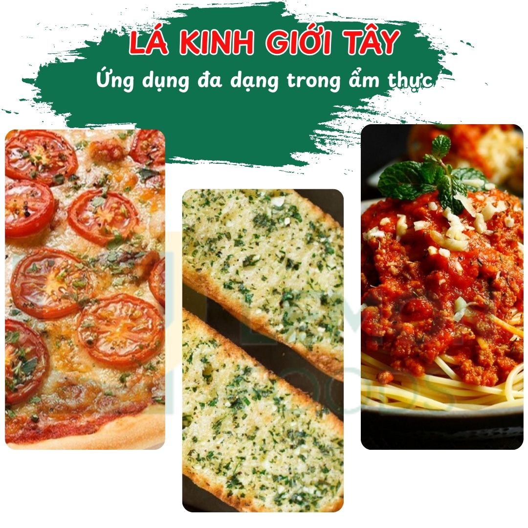 Nhắc đến kinh giới, nhiều người nghĩ ngay đến pizza, và đúng lá oregano chính là linh hồn của pizza Ý truyền thống. Nhưng ứng dụng của loại lá này rộng hơn nhiều: từ sốt cà chua, pasta, thịt nướng đến salad Hy Lạp. Lá kinh giới xuất hiện khắp nơi trong ẩm thực Địa Trung Hải và là một trong những loại gia vị lá Âu được tiêu thụ nhiều nhất toàn cầu.