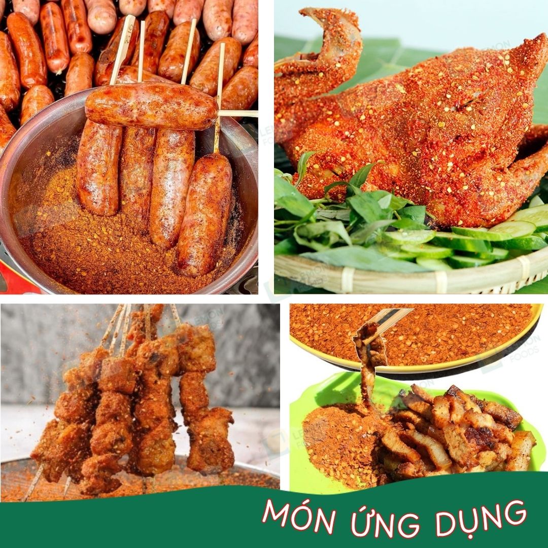 Đặc biệt khi làm muối chấm lạp xưởng nướng đá hay các món nướng khác, bột ớt tê cay thể hiện rõ giá trị vượt trội – biến những món ăn quen thuộc thành trải nghiệm ẩm thực đáng nhớ.