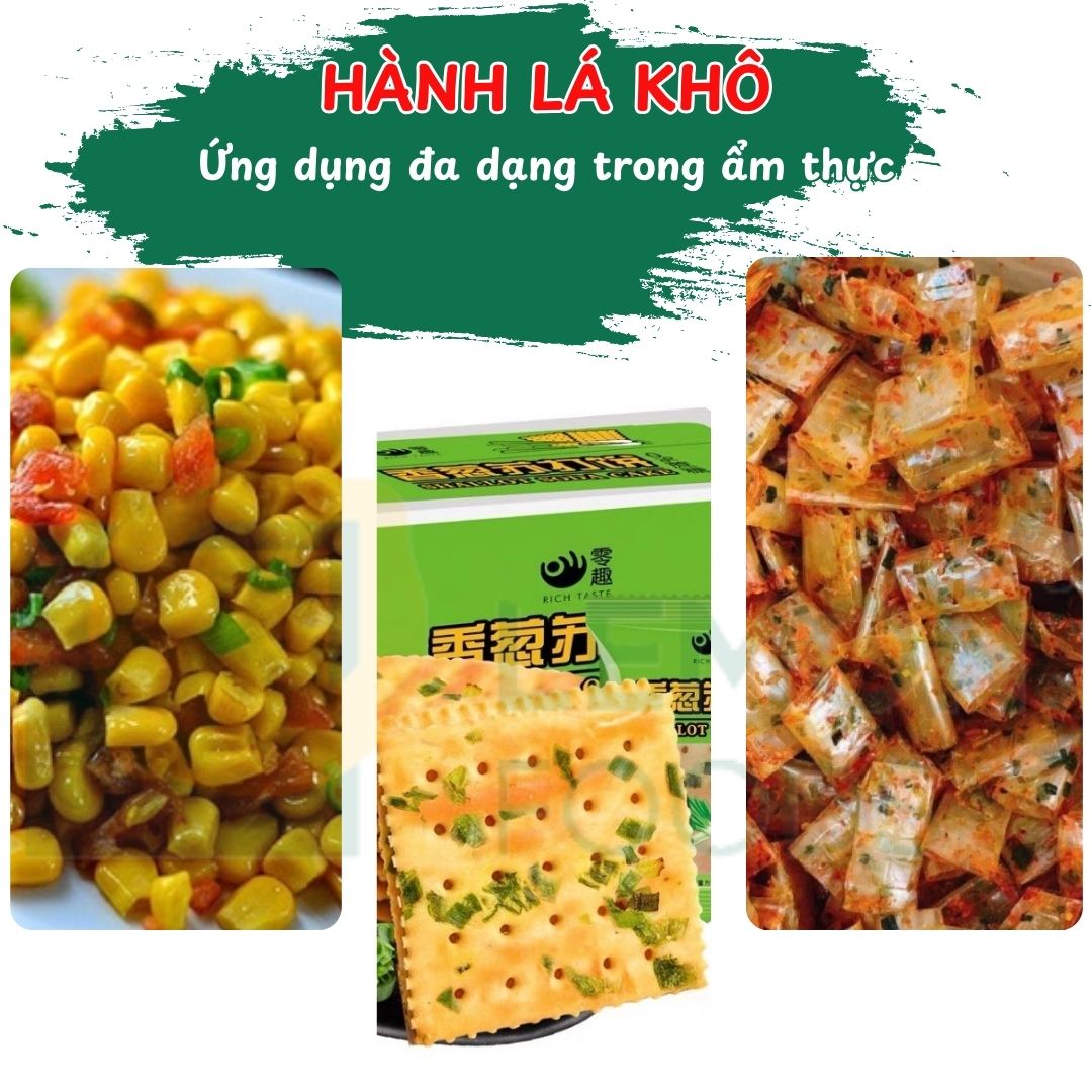 – Trang trí món ăn: Hành lá sấy khô giúp tạo điểm nhấn thị giác hoàn hảo, khiến món ăn trở nên hấp dẫn và đầy đủ dưỡng chất hơn.