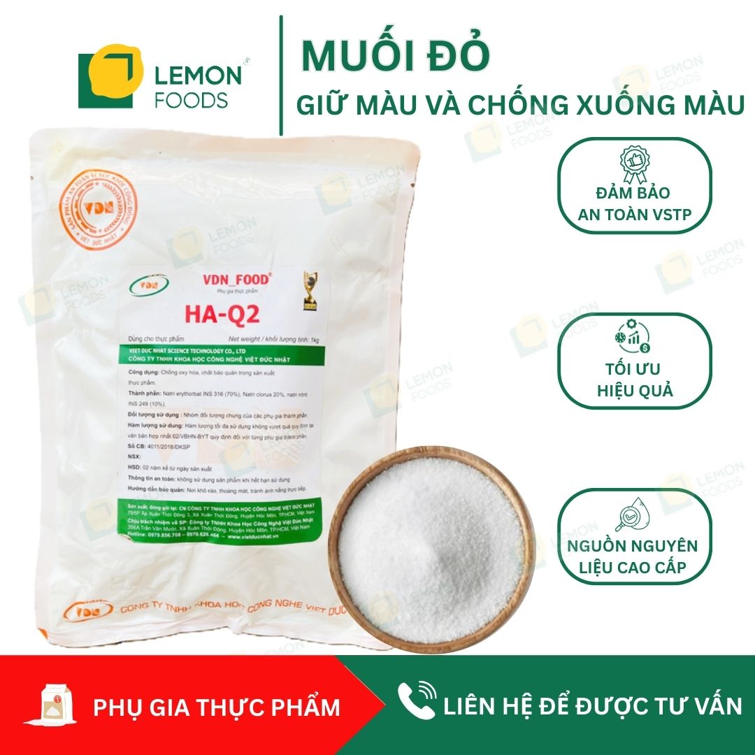 Bạn có đang gặp khó khăn với việc sản phẩm thịt chế biến bị xuống màu, mất tính thẩm mỹ và giảm giá trị thương mại? Muối đỏ giữ màu HA-Q2 chính là giải pháp hoàn hảo mà mọi cơ sở sản xuất thực phẩm cần có. Đây là phụ gia thực phẩm được Bộ Y Tế cấp phép sử dụng, đảm bảo an toàn cho sức khỏe người tiêu dùng.