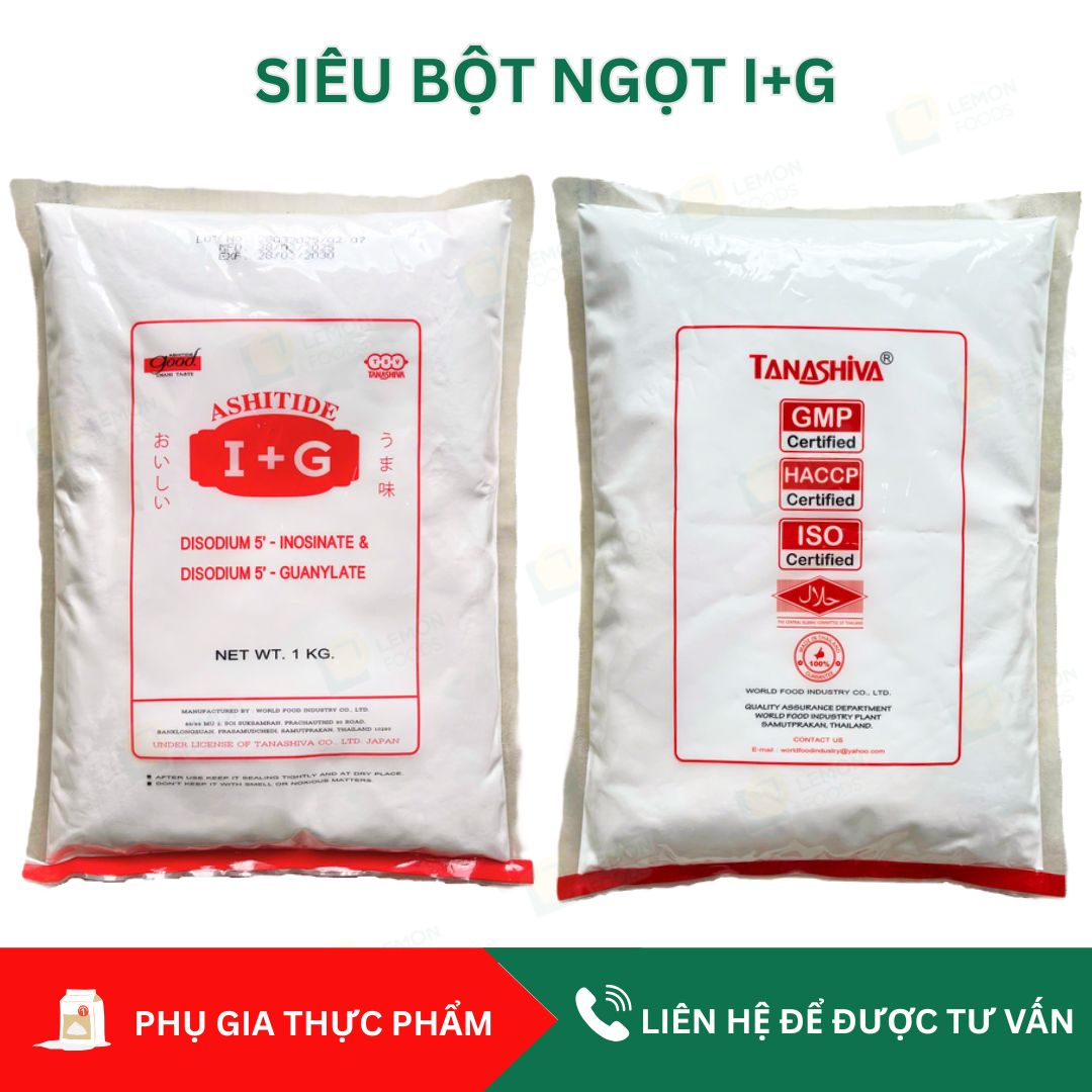 👉 Siêu bột ngọt I+G Ashitide là dòng phụ gia thực phẩm cao cấp được nhập khẩu trực tiếp từ Thái Lan. Với khả năng tạo vị ngọt gấp 100–150 lần so với bột ngọt thông thường, chất điều vị I+G giúp tối ưu chi phí sử dụng nguyên liệu mà vẫn đảm bảo độ đậm đà và hấp dẫn của món ăn.