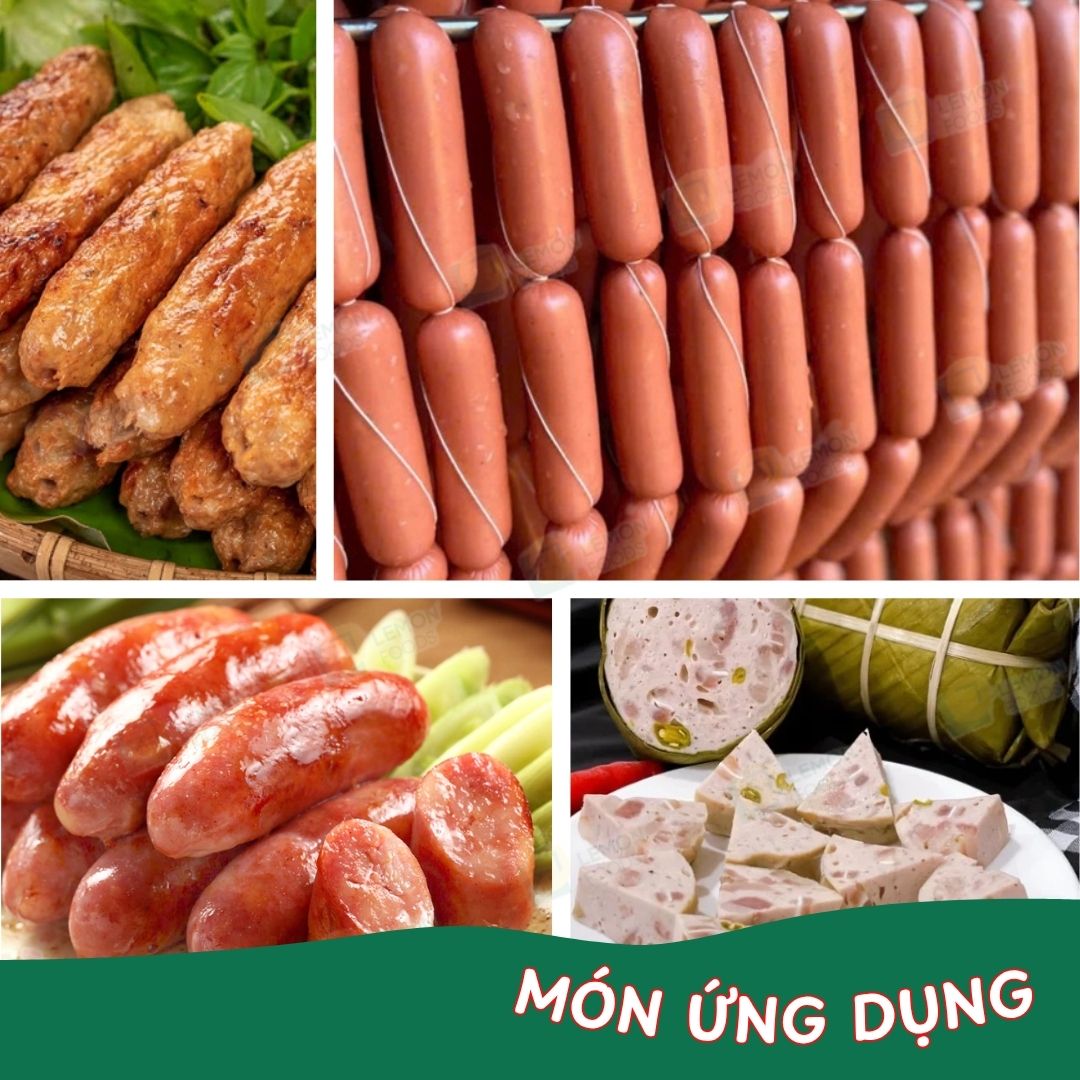 – Trong sản xuất giò chả, xúc xích: Giúp tăng độ dẻo, giữ nước và ổn định cấu trúc khi đun nấu ở nhiệt độ cao hoặc bảo quản đông lạnh.